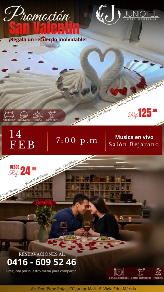 Este 14 de febrero regala una experiencia que perdure para siempre. En Juniotel Hotel Boutique, hemos preparado el escenario perfecto para que tú y esa persona especial vivan una noche llena de romance, lujo y detalles exclusivos.